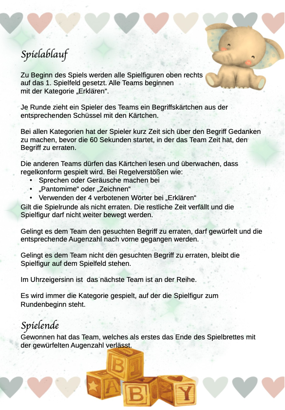 Das Babyparty Activity kommt im ansprechenden Design daher.
